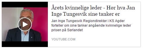 Jan Inge Tungesvik, Regiondirektør i KS Agder, har noen tanker om hvorfor kvinnelige ledere er så viktige på Sørlandet. Hør hans tanker her!